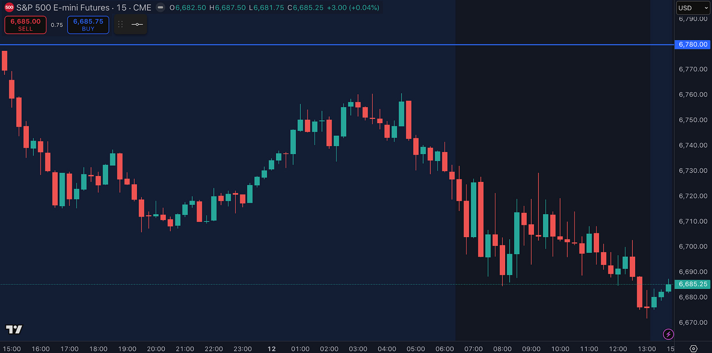 As per our daily plan, 6780 was our pivot for the session. ES sellers defended our 6780 during the close of Wednesday’s session and ES sold off over 70 handles as a result during globex. We tried buying the dip a couple times. It worked once at 6714 for a 40 handle bounce. It did come all the way back however and we tried buying the dip again but no cigar. We like these prices for longs. The current price action does not reflect what we think is to come. Let’s have some patience but continue to engage until our thesis is invalidated.